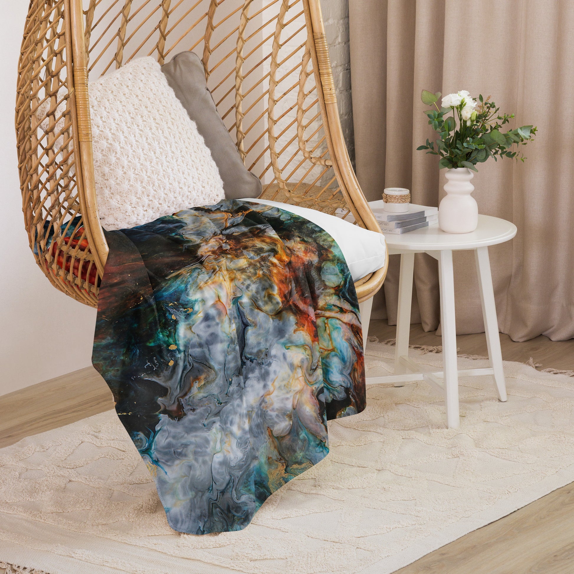 - Två Sidor av Mjukhet: Utsidan pryds av det konstnärliga mönstret, medan insidan är klädd i tjock, fluffig Sherpa-fleece som ger omedelbar värme.