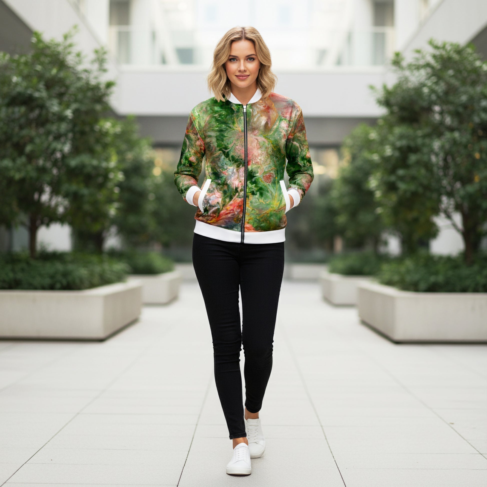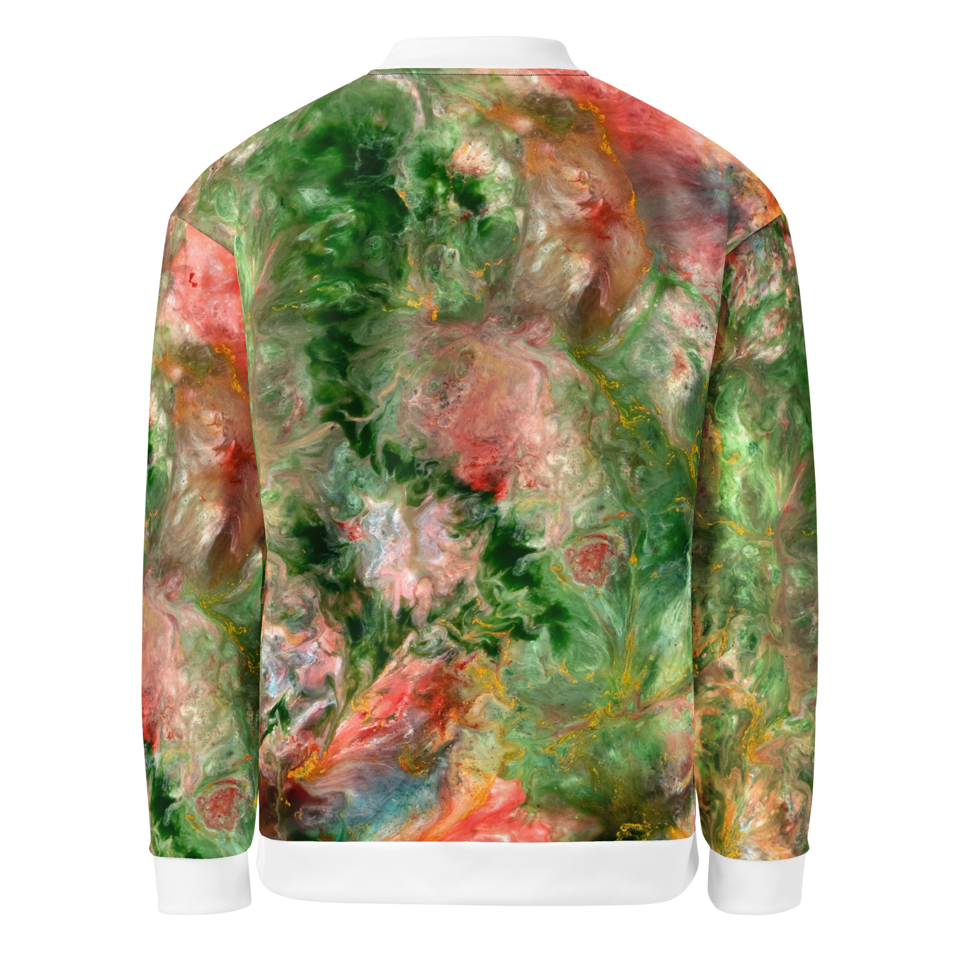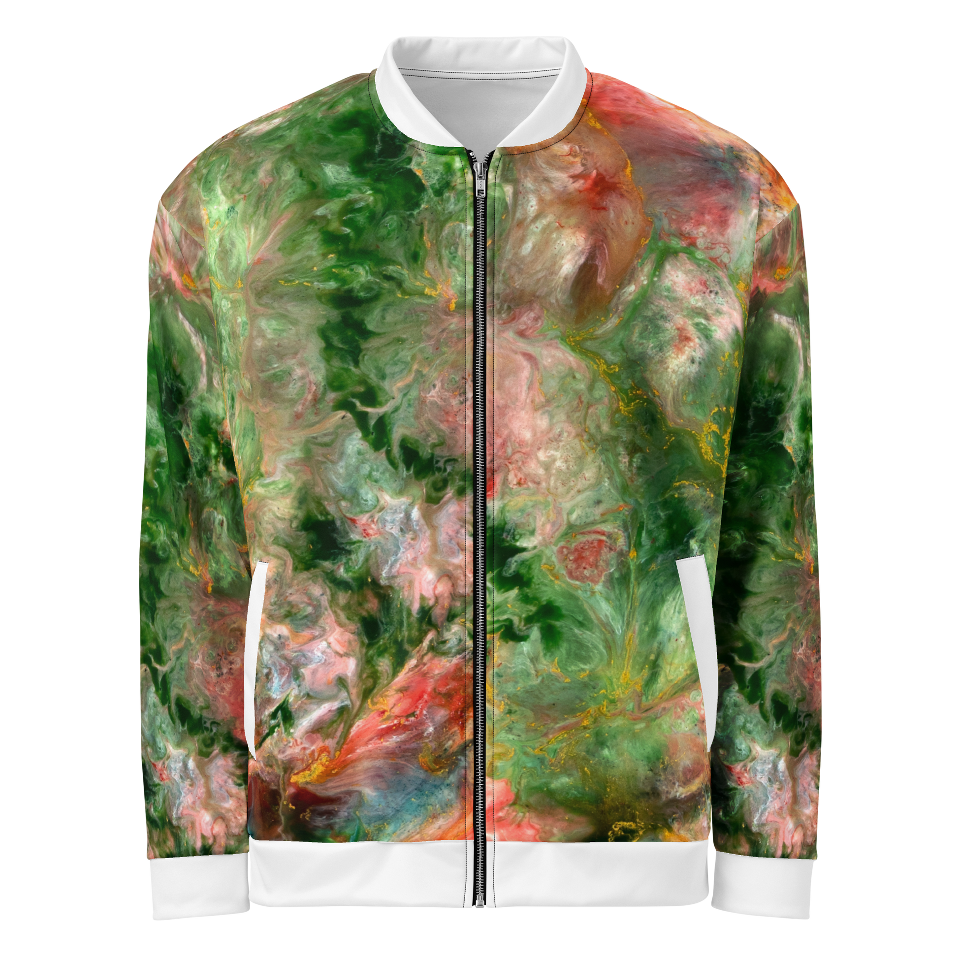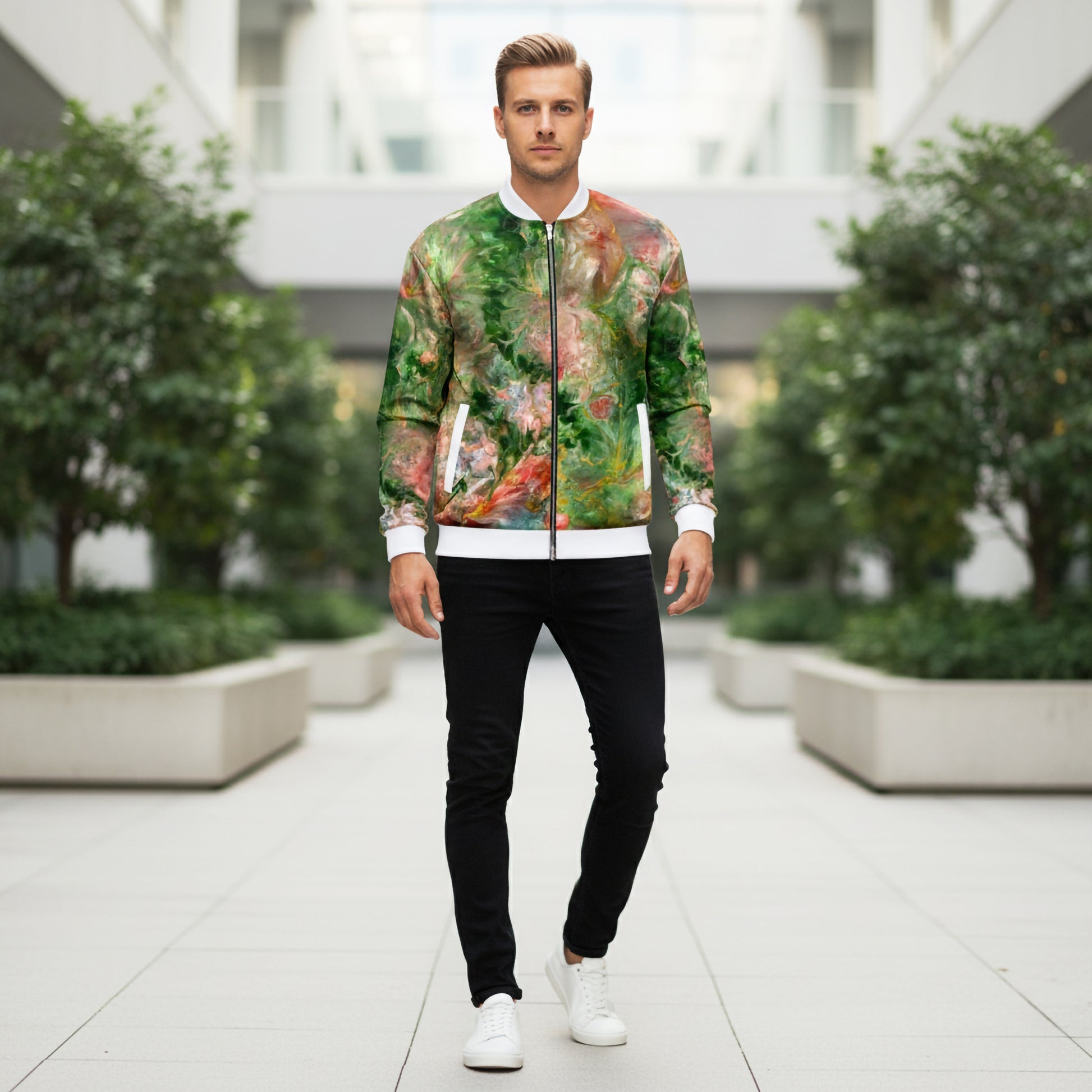 Släpp Loss Din Inre Drömmare med "Garden Dreams". Denna jacka är en explosion av färg och liv, som en drömsk trädgård i full blom. Med flytande penseldrag i grönt, rosa och jordnära nyanser skapar "Garden Dreams" en känsla av lugn och kreativitet. Bär den och låt din outfit blomstra med en tidlös och organisk elegans som fångar blickar. Perfekt för dig som älskar att addera en touch av konstnärlig magi till din vardagsstil.